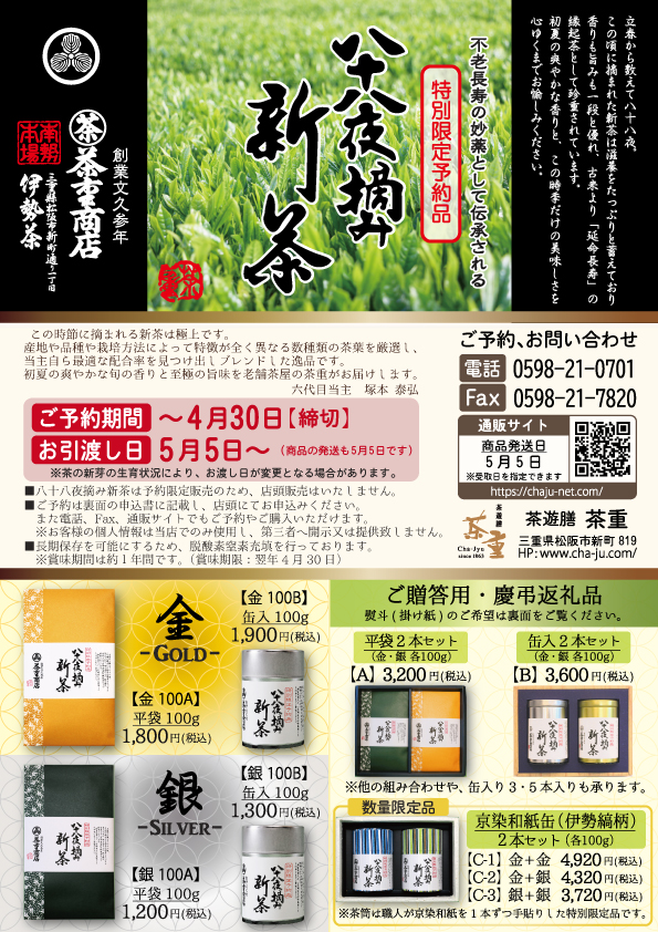 ■八十八夜摘みは、予約販売のみのため、店頭での販売はいたしません。